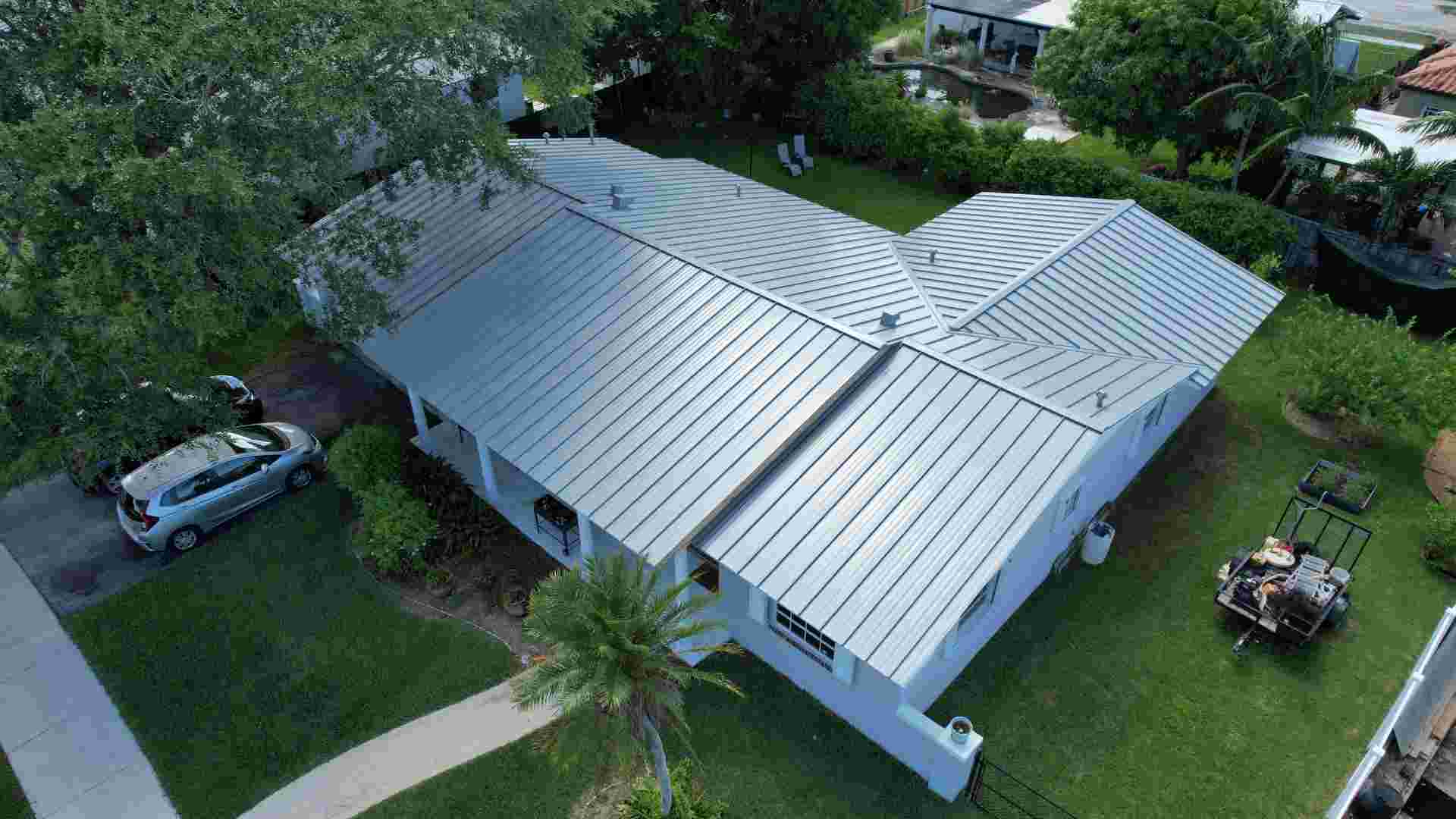 Standing seam metal roofing — 40 to 70 years. The longest-lasting practical option for Miami residential. Resistant to wind, fire, and salt air corrosion when coated properly. We install more standing seam metal than any other premium system